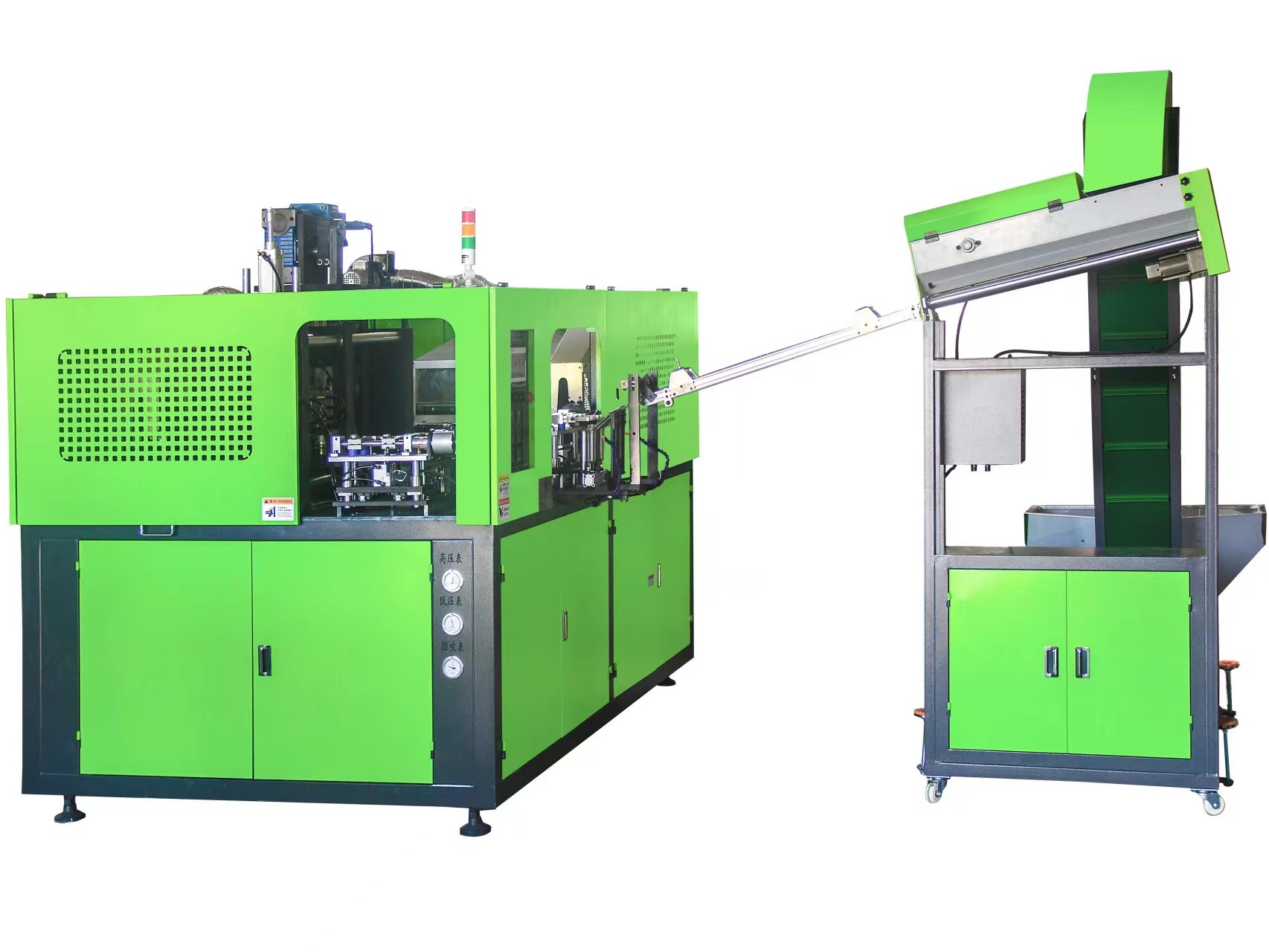 廣口一出二全自動吹瓶機主要用于PC、PS、PET廣口易拉罐吹瓶生產